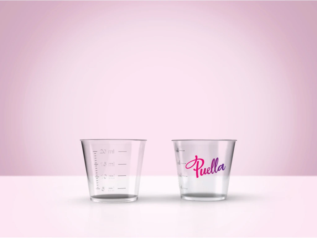 Dieser handliche Messbecher ist der ideale Helfer für die Dosierung von flüssigen Puella Waschmitteln.