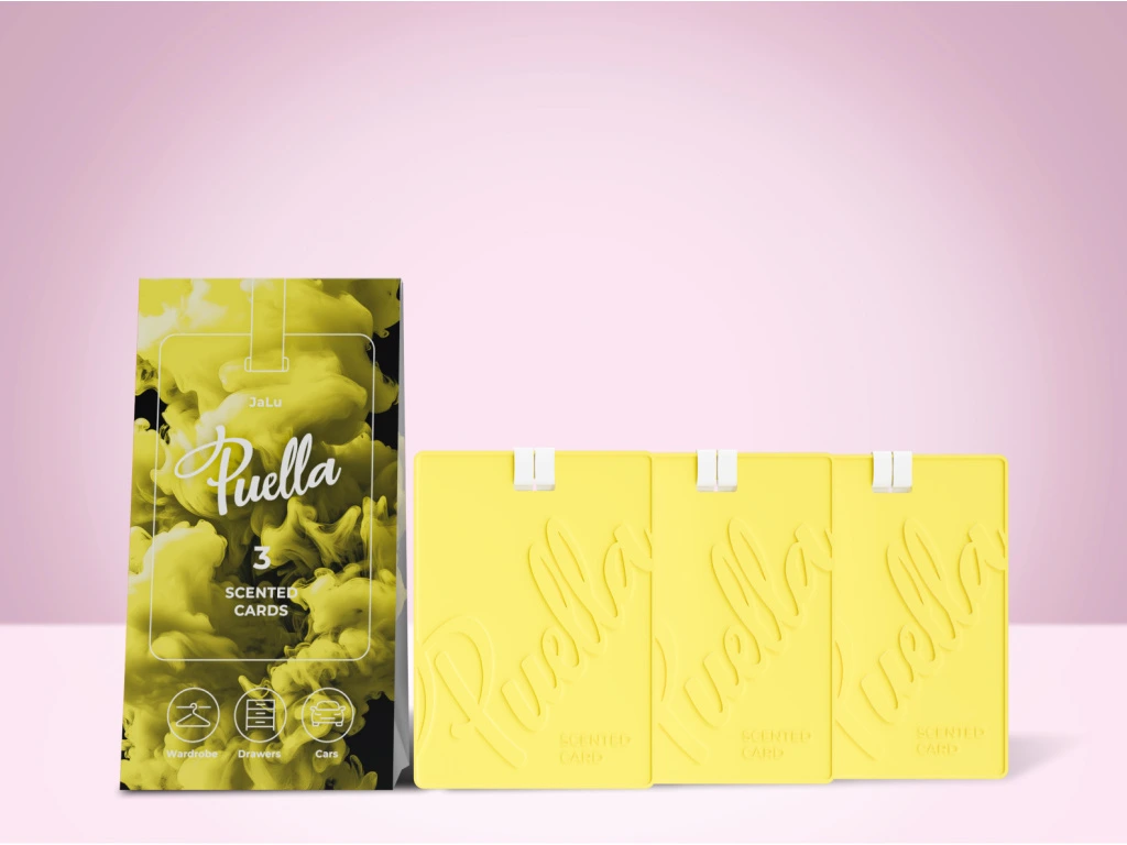 Entdecken Sie die Kraft eines Dufts, der jede Ecke in einen Ort voller Wohlbefinden verwandelt. Die Duftkarte von Puella ist ein elegantes Accessoire für Ihr Zuhause, Auto, Ihre Garderobe oder den Schreibtisch – wo auch immer Sie sie platzieren, bringt sie Frische und Ihren liebgewonnenen, charakteristischen Duft.