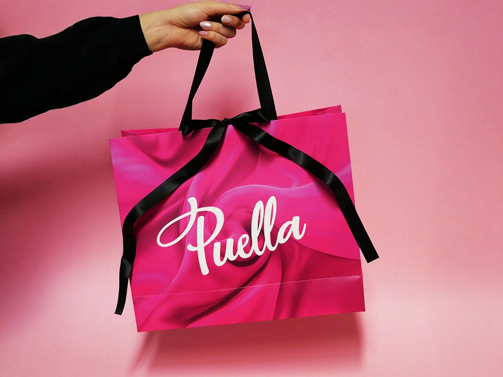 - Tasche S: ideal für kleine Geschenke, für bis zu 16 Puella-Produkte mit einem Volumen von 50 ml. Tragkraft: 1 kg, Volumen: 2,05 l.